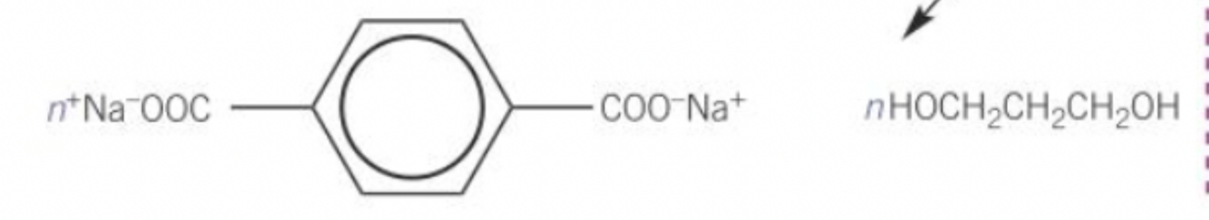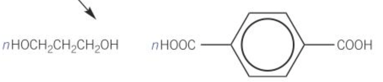 Lining up the varying monomers: -OH is taken off the dicarboxylic acid and -H is taken off the diol