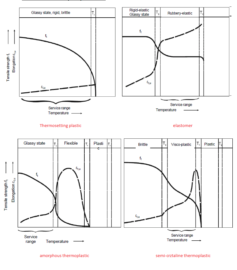 Temperature-dependent resistance and force-deflection behavior of amorphus thermoplastic, semi-crystalline thermoplastic, thermosetting plastic and elastomer