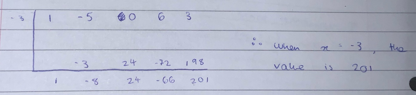 Value of x^4 - 5x^3 + 6x + 3 when x = -3