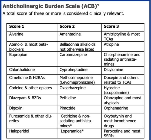 When calcuting Anticholinergic Burden Scale (ACB), a score of [] or more is considered clinically relevant