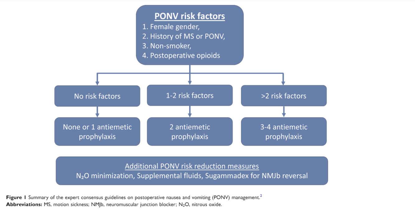 4 fatores de risco:1. Gênero feminino2. História de cinetose ou PONV;3. Não fumante;4. Uso de opióides