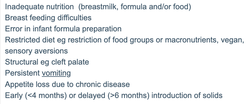 causes of slow weight gain relating to inadequate caloric intake/retention