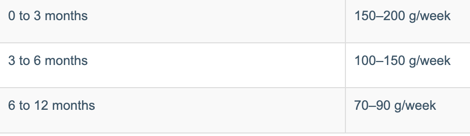 weigtht gain will fall off around 6 months due to the introduction of gluten into the diet