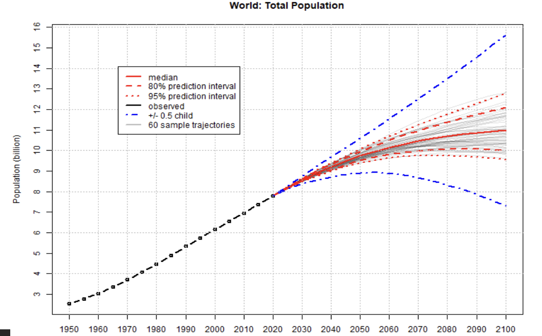 Predictions include estimates on how population growth will change over time.