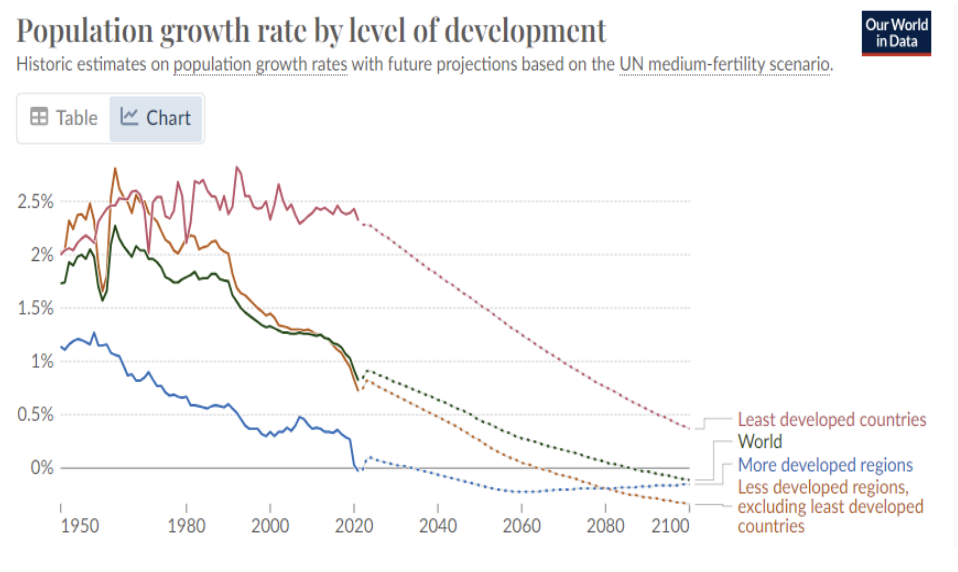 What is the predicted trend for world population growth according to the UN?