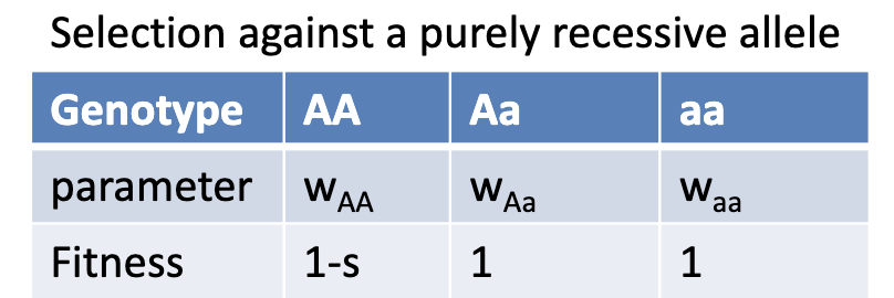 Model of purley recssive fitness (Selection against Dominenat)