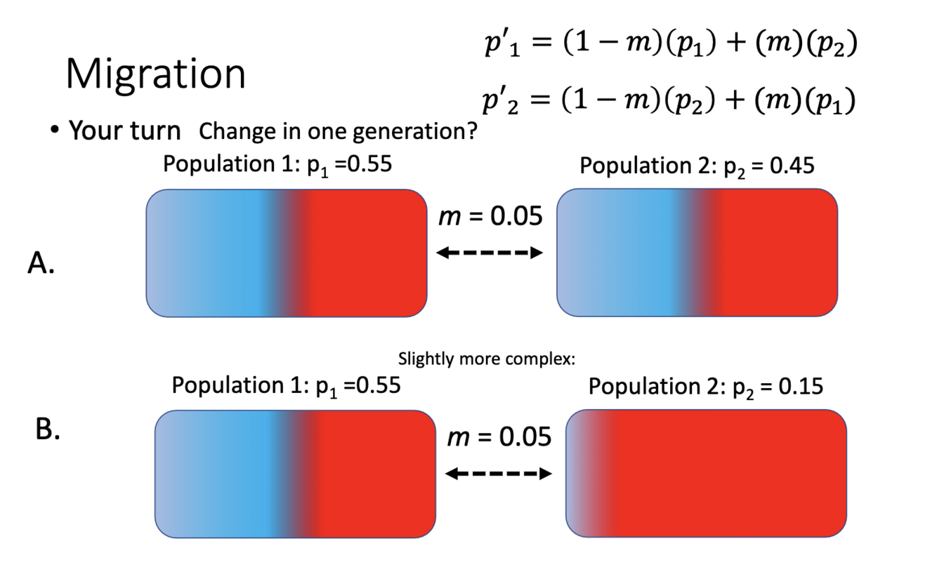 Get chnage in allele frequency because move individuals in and out = undergo evolutionary change