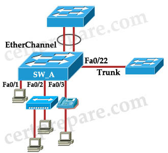 Port security can only be configured on static access ports or static trunk ports (DTP disabled). In this case we don’t know if the ports of the trunk link have DTP disabled or not -> only Fa0/1, Fa0/2 and Fa0/3 can be configured port security.