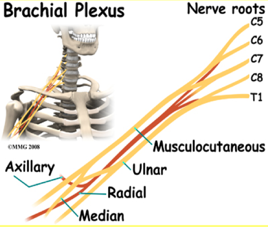 Musculocutaneous – inability to flex forearm