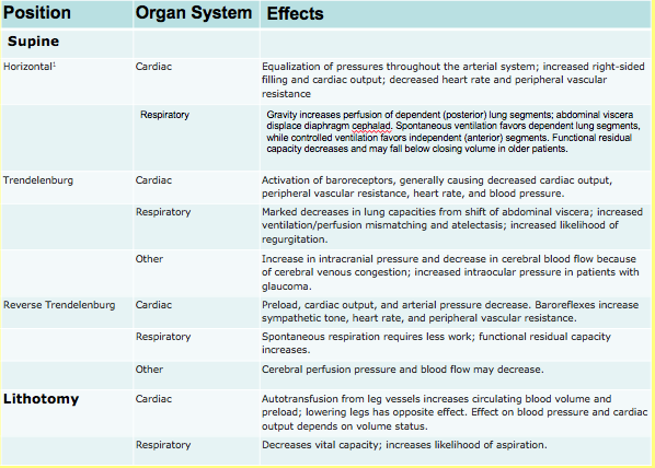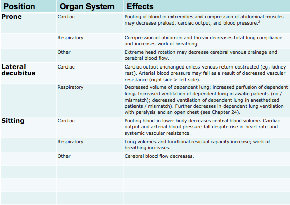 Physiological effects of common positioning table 2