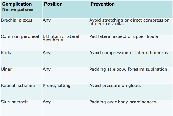 Common complications of certain positions and how to prevent them