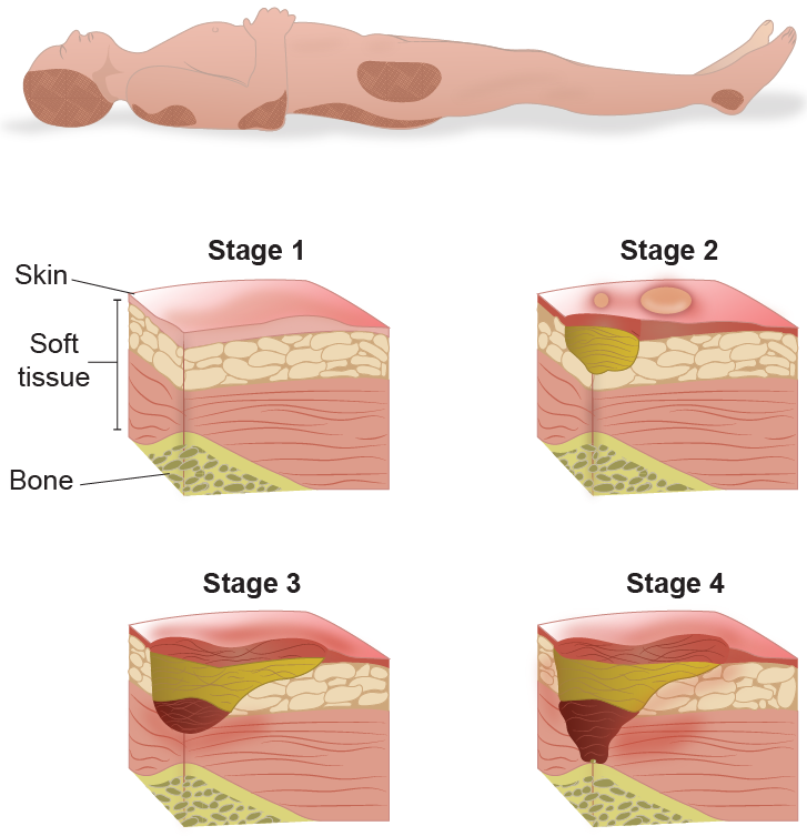 Injuries of the skin and tissue due to prolonged pressure on the skin.