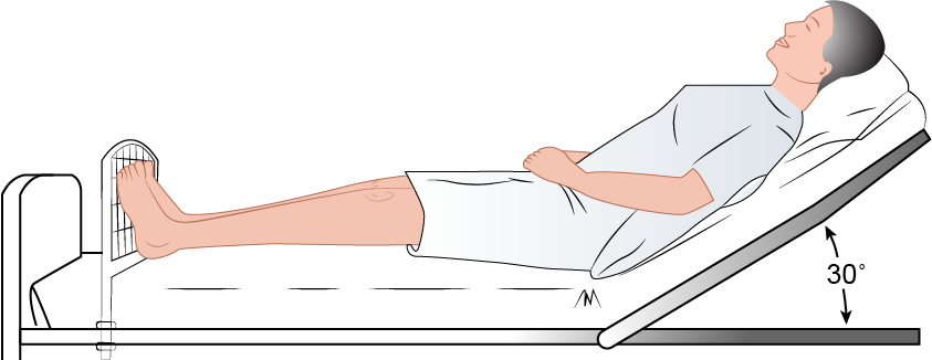 Supine with head higher than the feet.