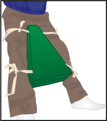 Legs abducted (apart) using a wedge pillow; avoid hip flexion > 90 degrees.