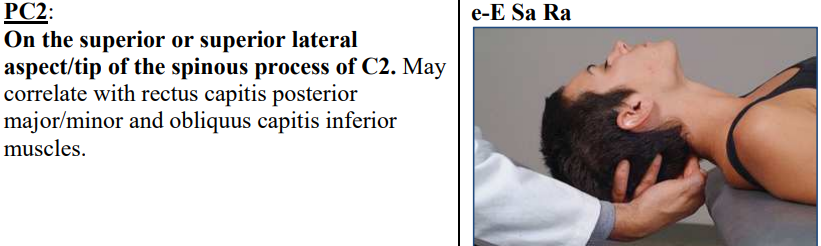 What muscles is the PC2 midline tenderpoint associated with?