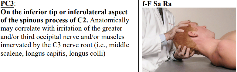 What muscles and nerves is the PC3 tenderpoint associated with?
