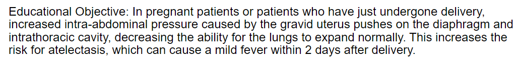 A 2 day postpartum pt develops a mild fever and shortness of breath. She had been given prophylactic antibiotics prior to c-section, she has no breast tenderness or erythema, no ronchi, wheezes or crackles on auscultation, no lower extremity edema, and the surgical incision is clean and dry from her c-section. The fundus is firm and nontender. What is the MOST LIKELY cause of her fever and SOB?