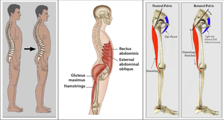 • Mobilité bassin réduite par la tension dans ischio-jambiers