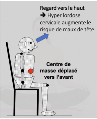 Posture assise non ergonomique : flexion du tronc