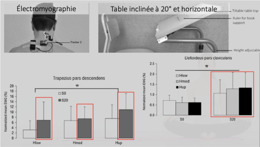 Étude : effet de l’inclinaison de la table - tâche de lecture durant 5 min
