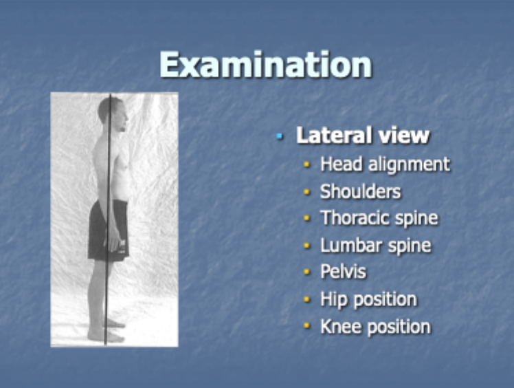 what would you be looking at in a postural assessment of a patient from a lateral view?