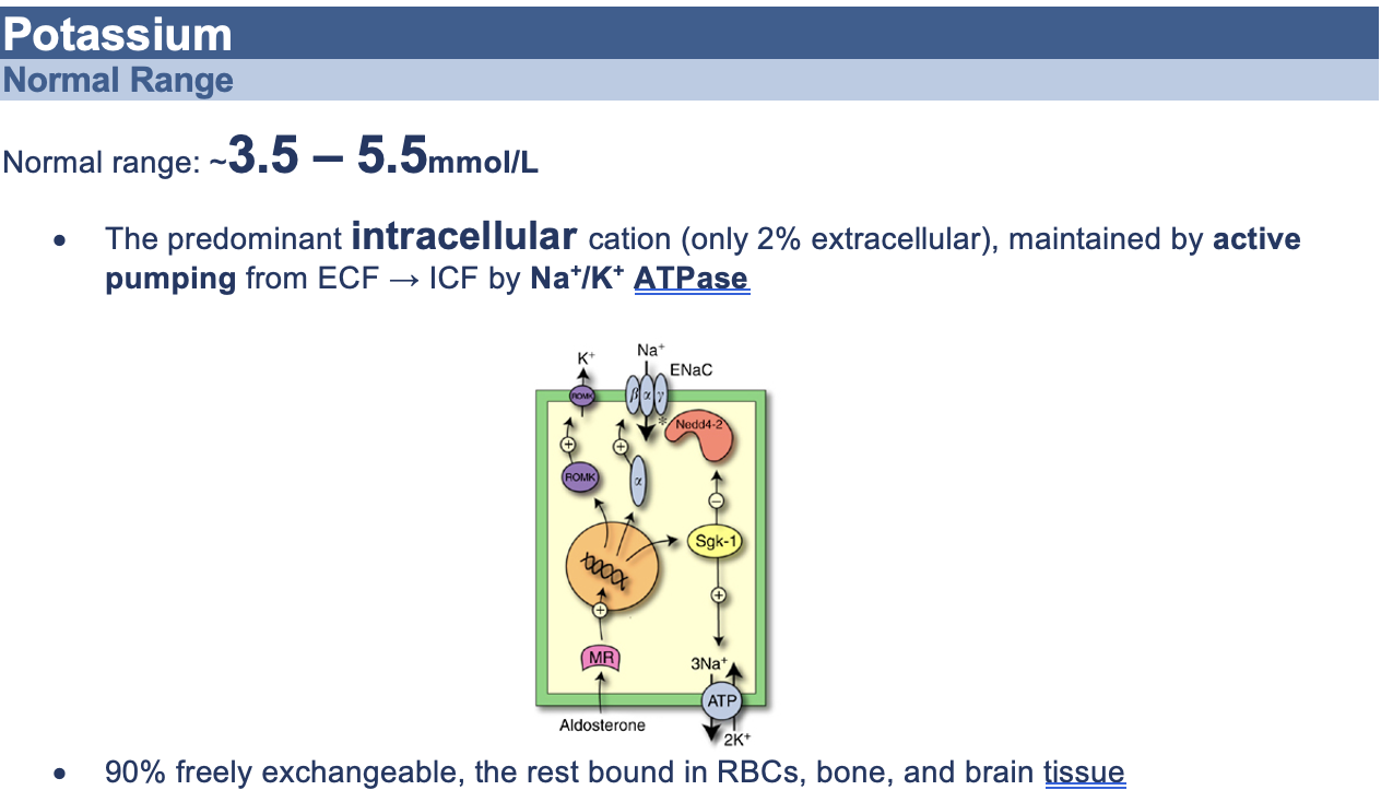 Normal potassium homeostasis and range