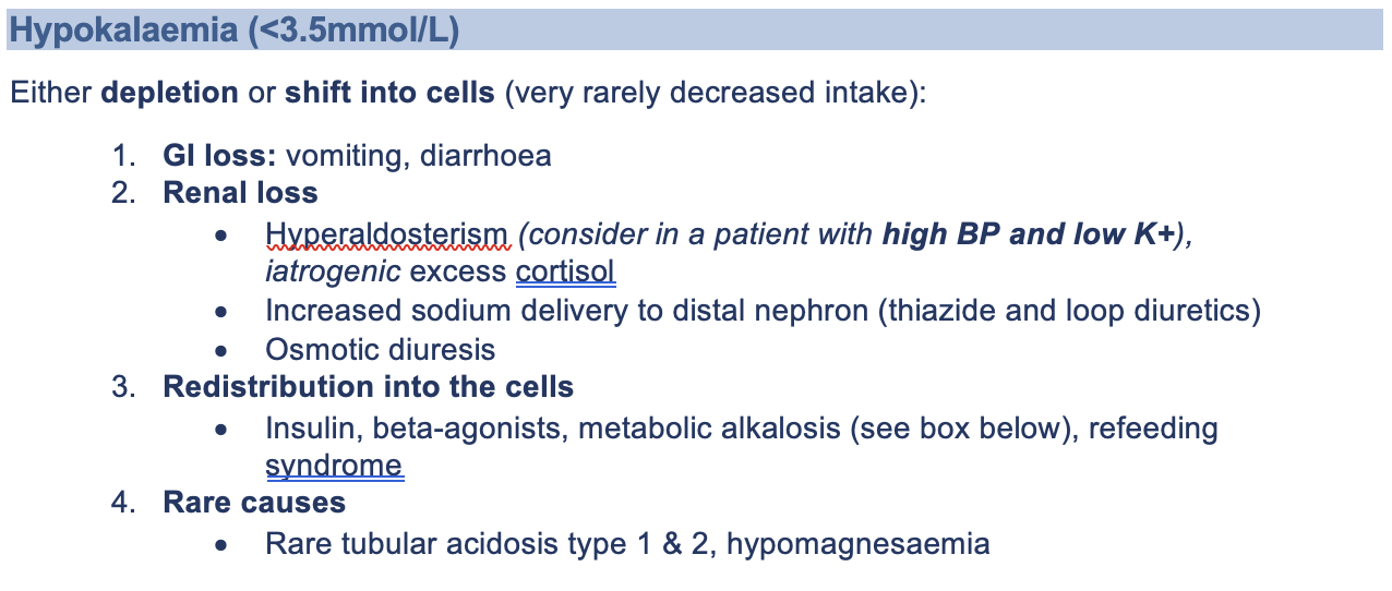 Hypokalaemia causes