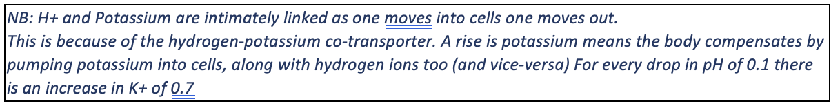 How do potassium and H+ relate to each other?