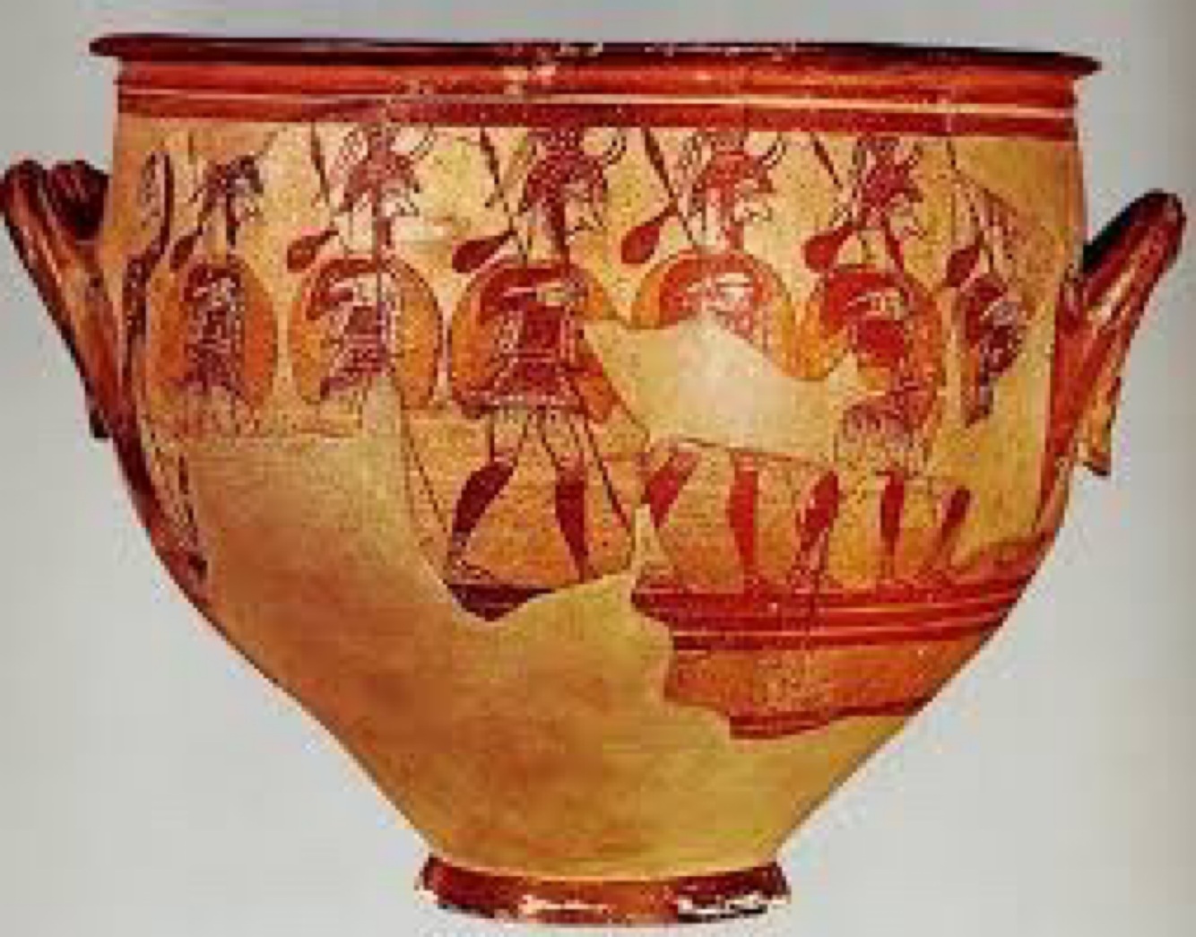 shows evolution of armour as soldiers are using different shields to earlier period - round/crescent shaped shields in comparison to earlier tower shields