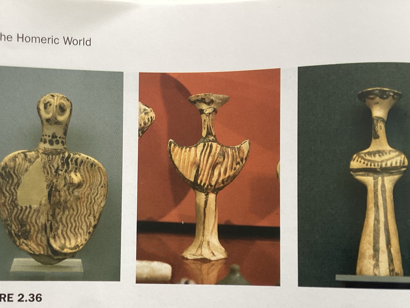 small clay figurines, sometimes found in children’s graves so considered to be toys