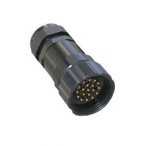 The plug and receptacle both have a locking mechanism that twists to prevent accidental disconnection.