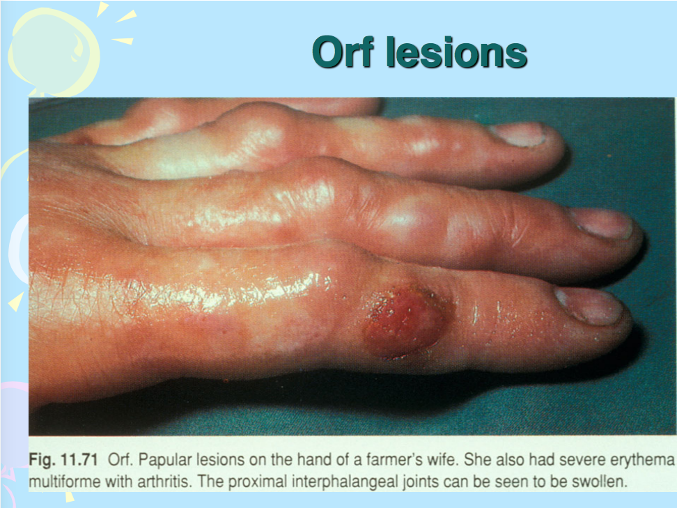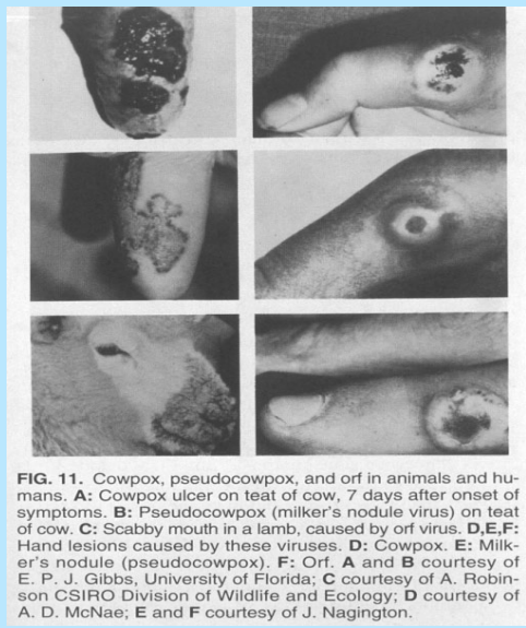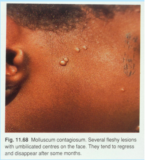 –Human infection by contact, usually single lesion which spontaneously regresses