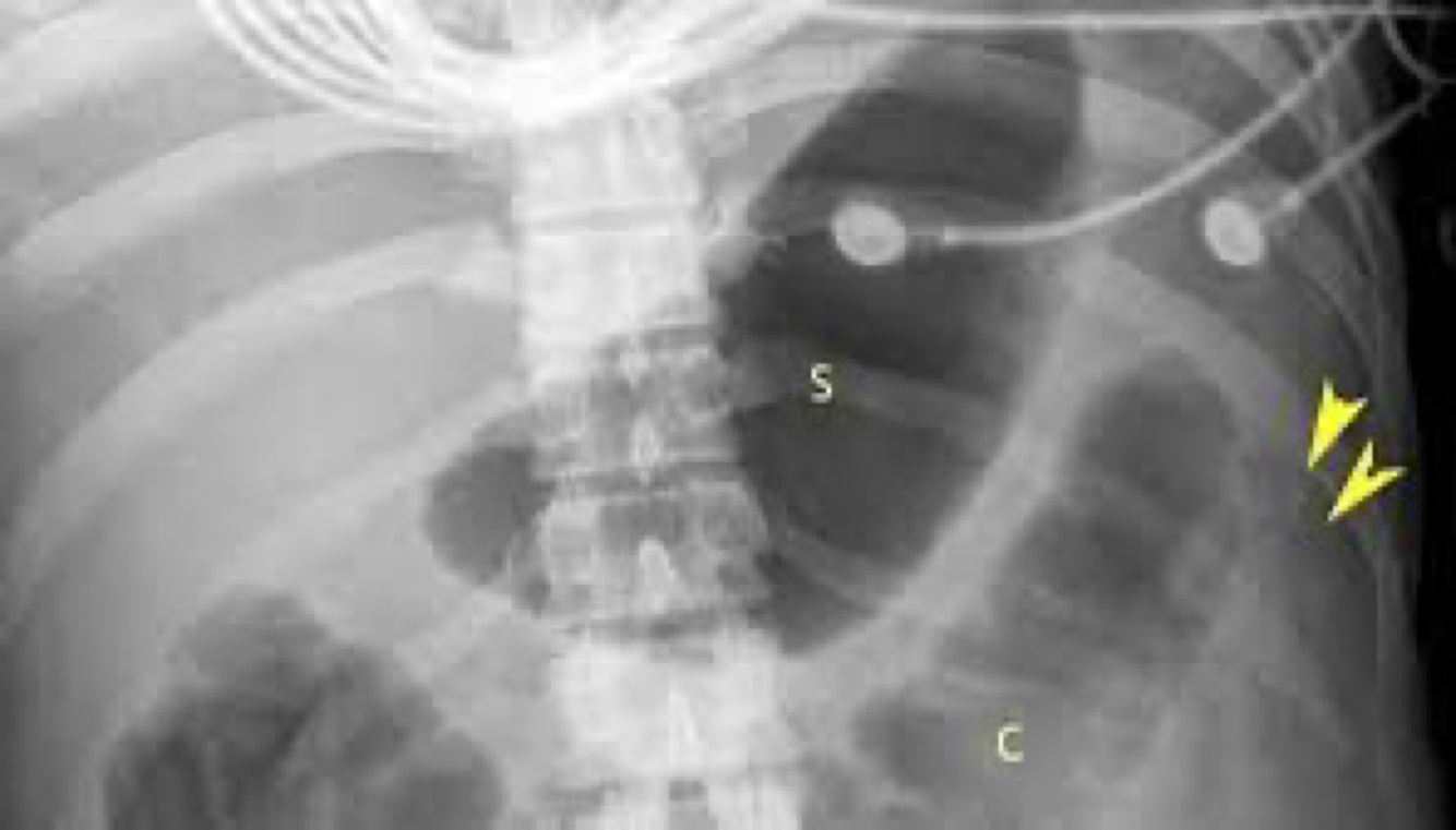 Tear all layers of esophagus, left- sided pneumo/pain/effusion