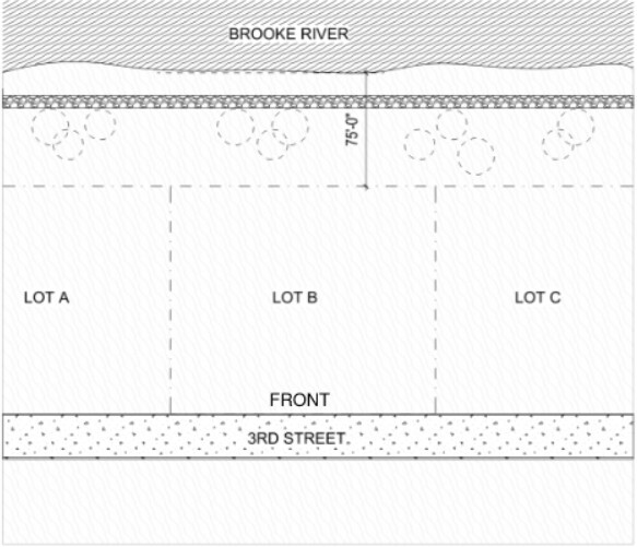 Brooke River’s ordinary high water mark (OHWM) is 75 feet from the plot boundary.