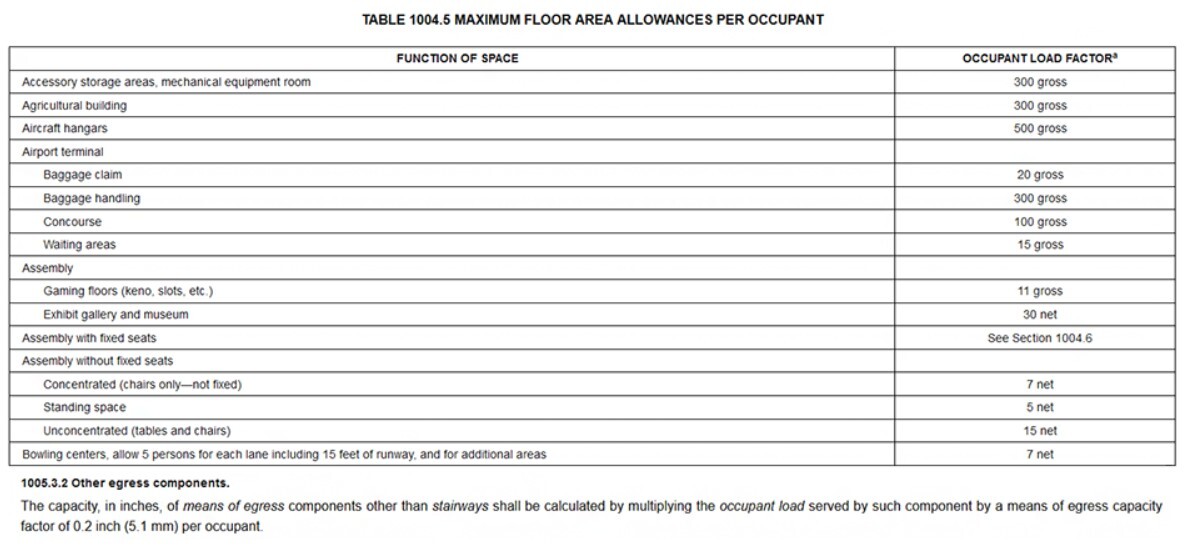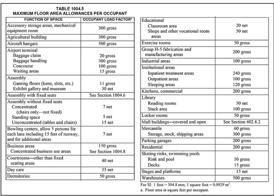 Occupant load = 52 suites × 12 fixed seats = 624 occupants