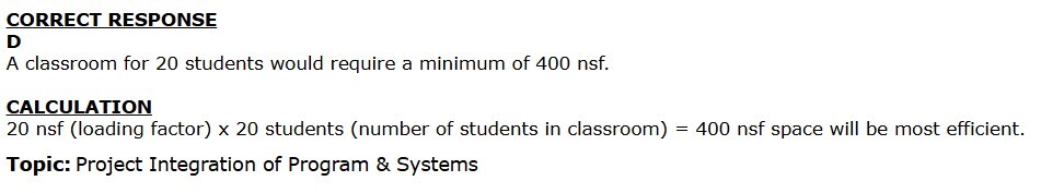 A classroom for 20 students requires a minimum of 400 net square feet. Space D most efficiently meets this requirement.