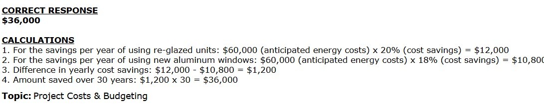 Savings per year with re-glazing = $60,000 × 20% = $12,000