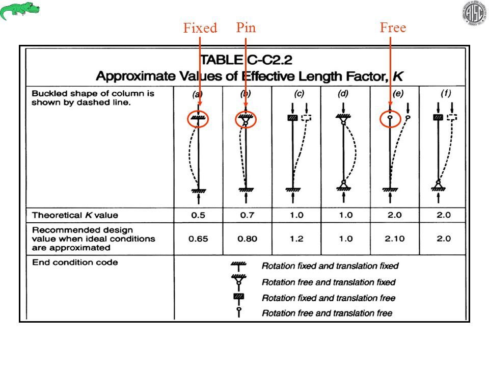 The ratio l/r or Kl/r used in column design, where l is the length, r is the radius of gyration, and K is an effective length factor.