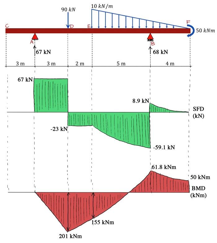 A diagram obtained by making an imaginary cut through a structure and applying the equations of equilibrium to the remaining portion, called the “free body.” By this means, the internal forces of a structure may be determined.