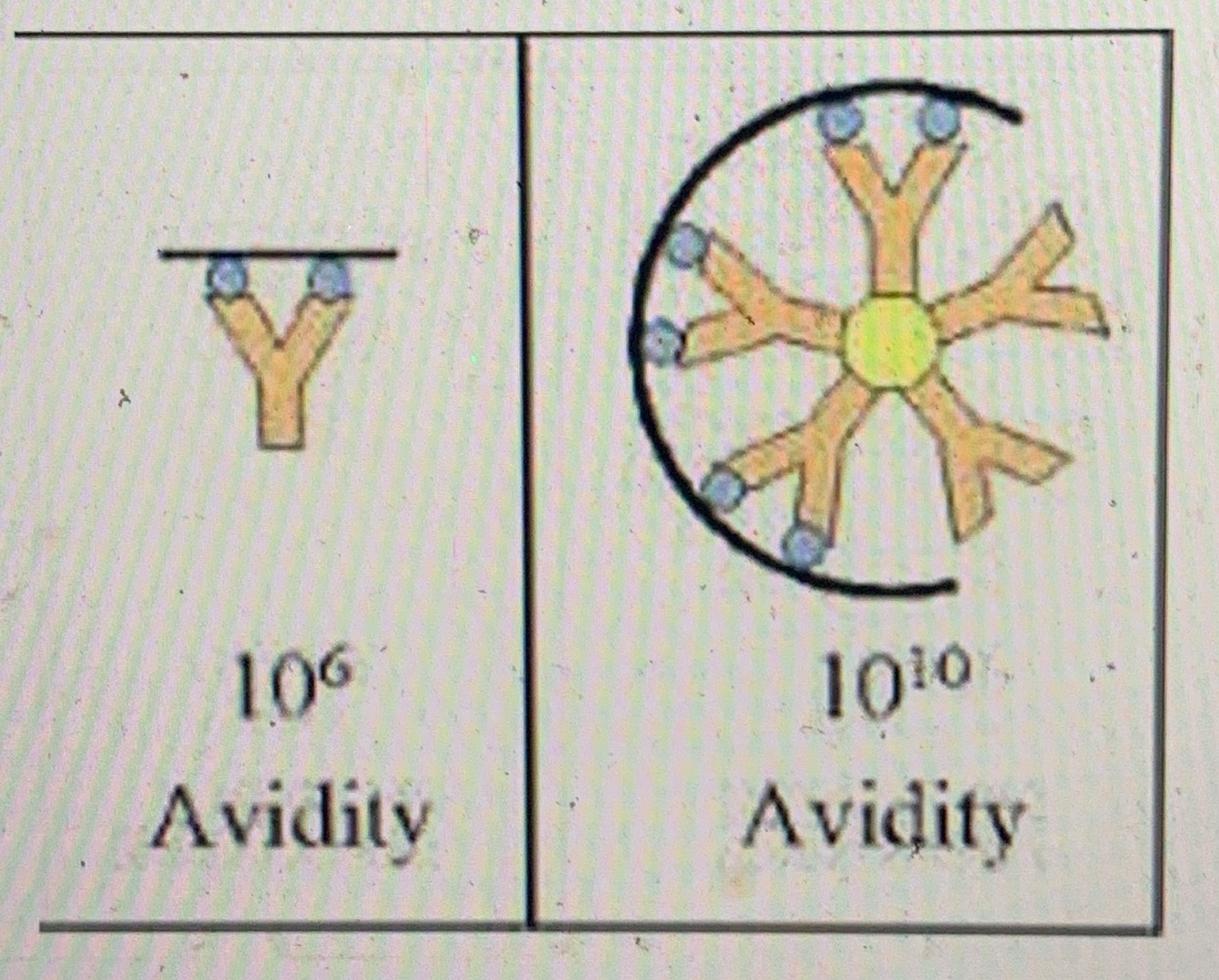 —> force de liaison entre 1 Ac (les 2 paratopes) et un Ag (avec plusieurs epitopes)