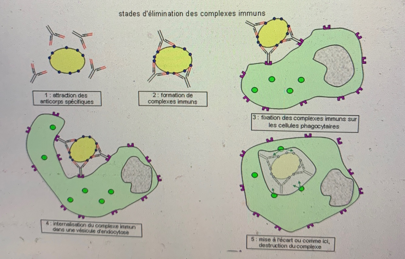 —>Les complexes immuns sont par la suite éliminés par les monocytes-macrophages