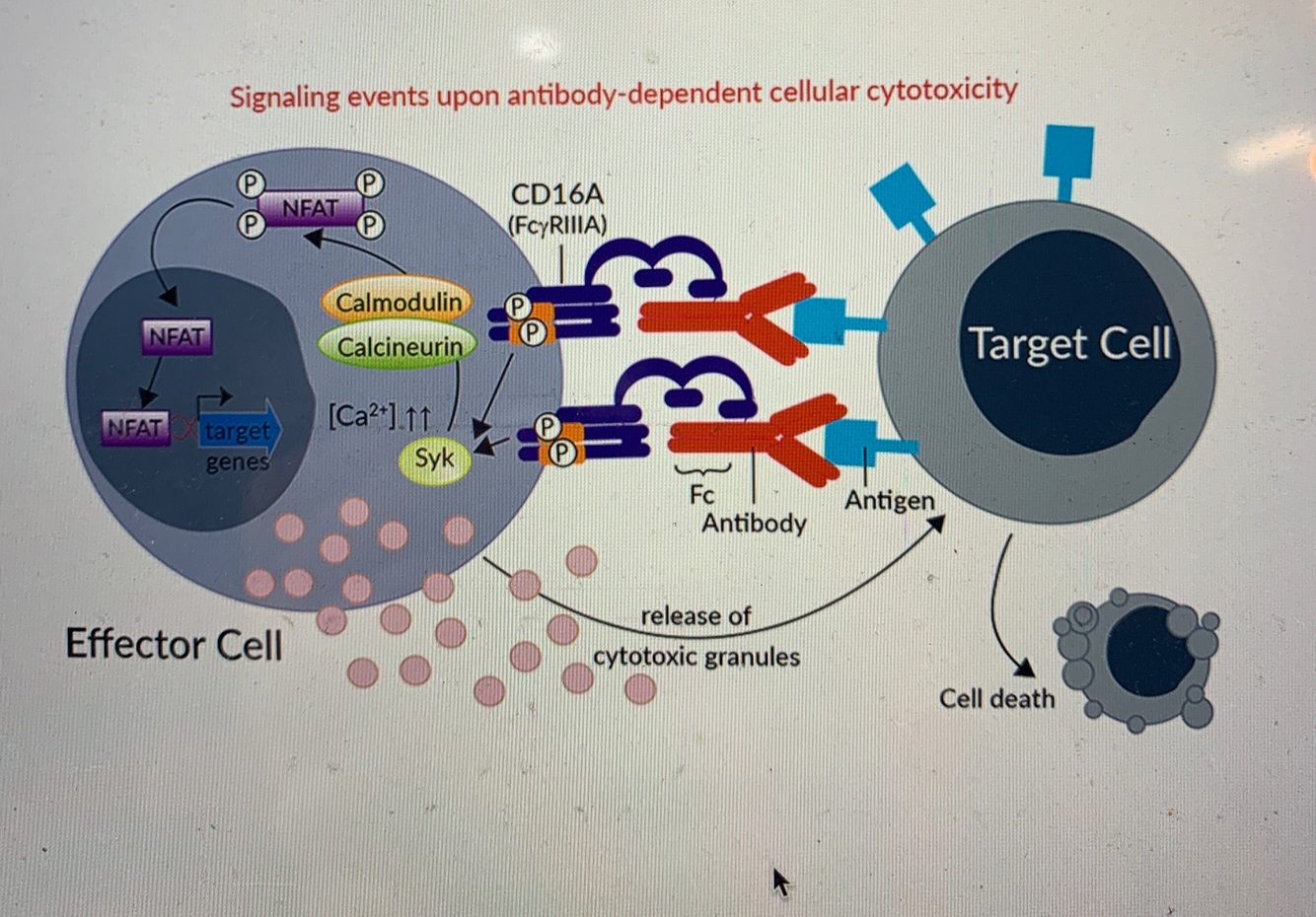 —> récepteur a Ac (Fc) sur c effectrice (immunitaire) détecté la Fc de l’Ac & déclenche signaux activateurs par ITAM