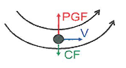 an air parcel in cyclonic flow =PGF ….. CF