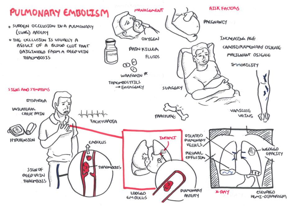 b) The left side of the heart is receiving no blood from the lungs because of the PE