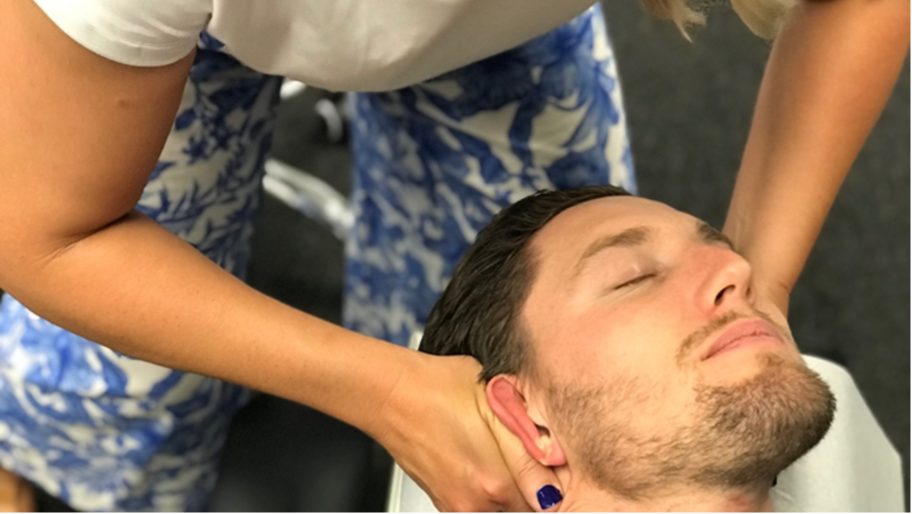Head: Laterally flex the head and then rotate the head