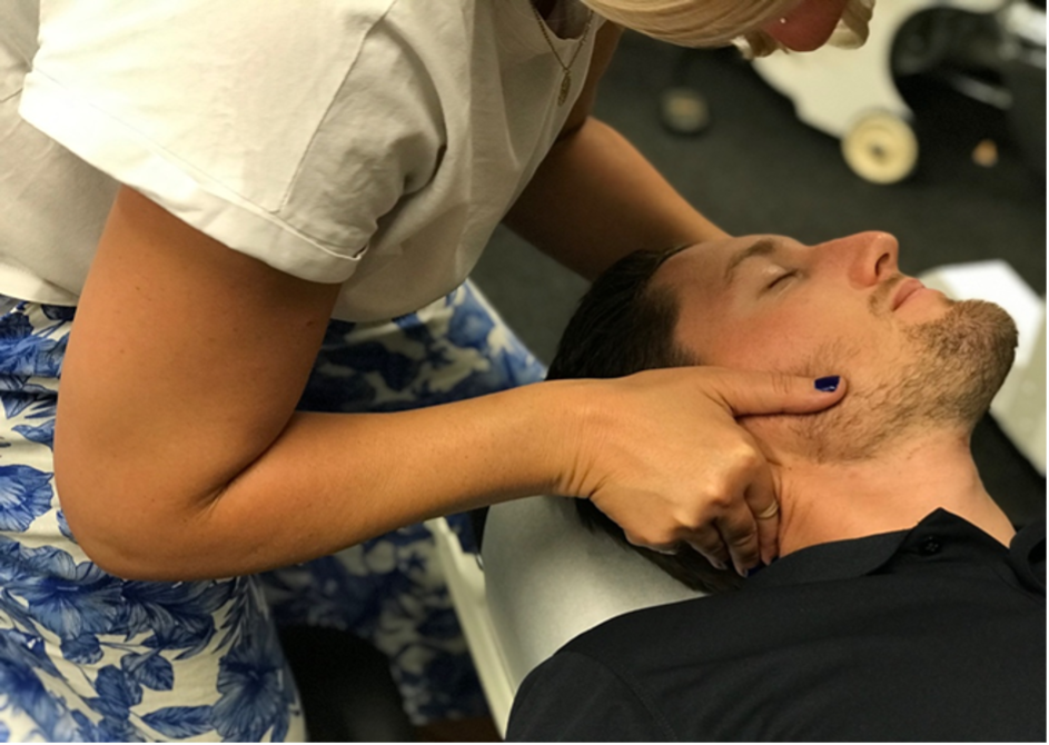 Hand Placement: Lateral posterior aspect arch of C1 with DIP/PIP