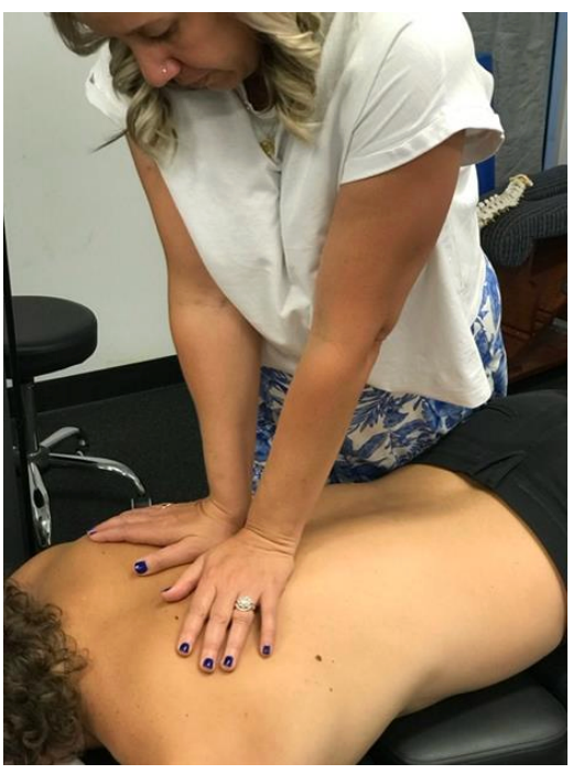 Tissue Pull: M-L, I-S from spinous to TVP with fleshy pisiform of hand. Torque is up the spine.