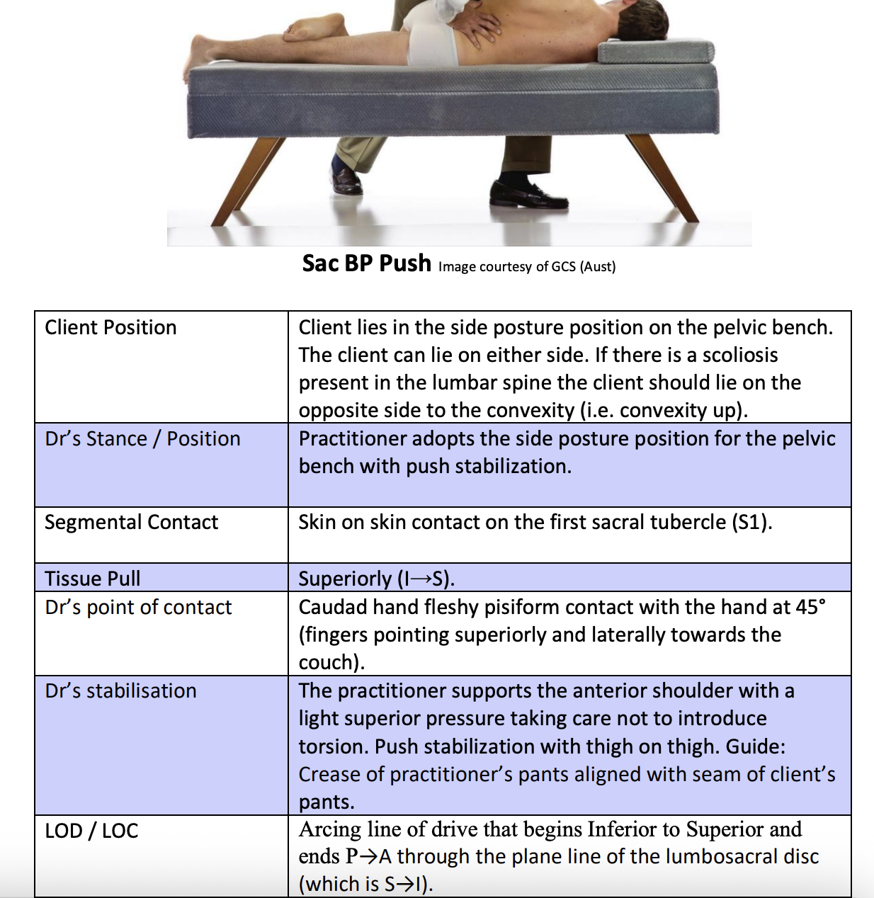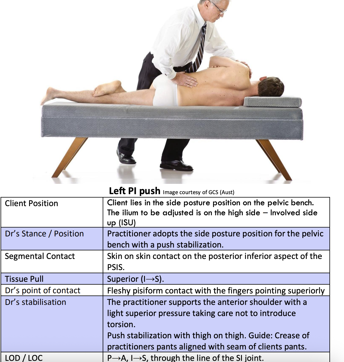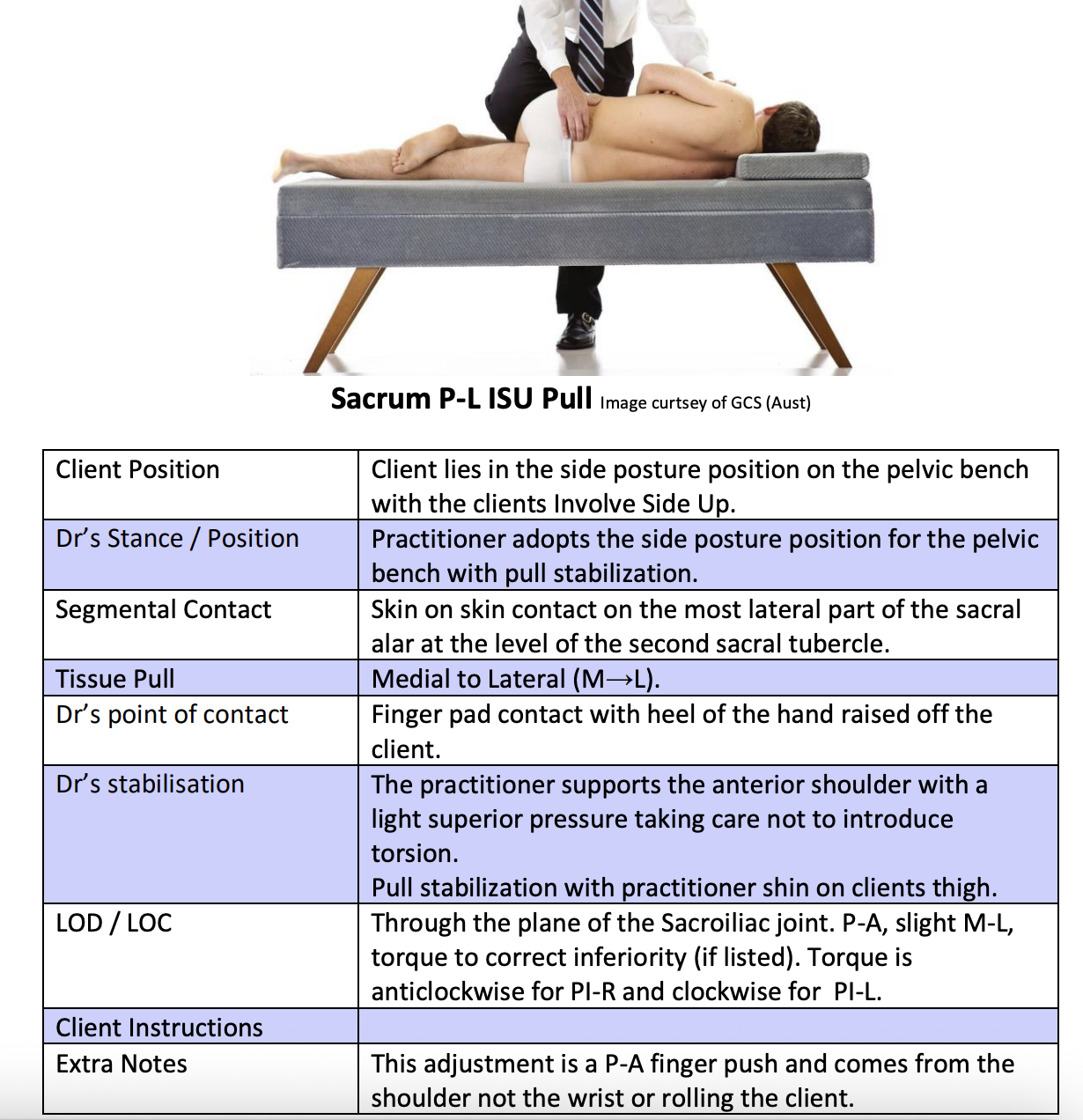 Sacrum P-L ISU and ISD Push