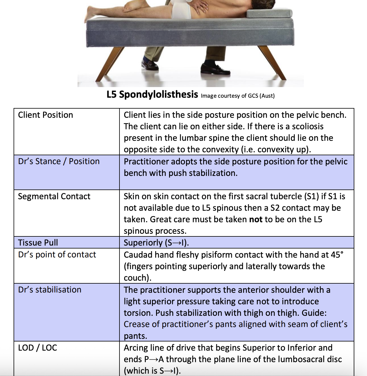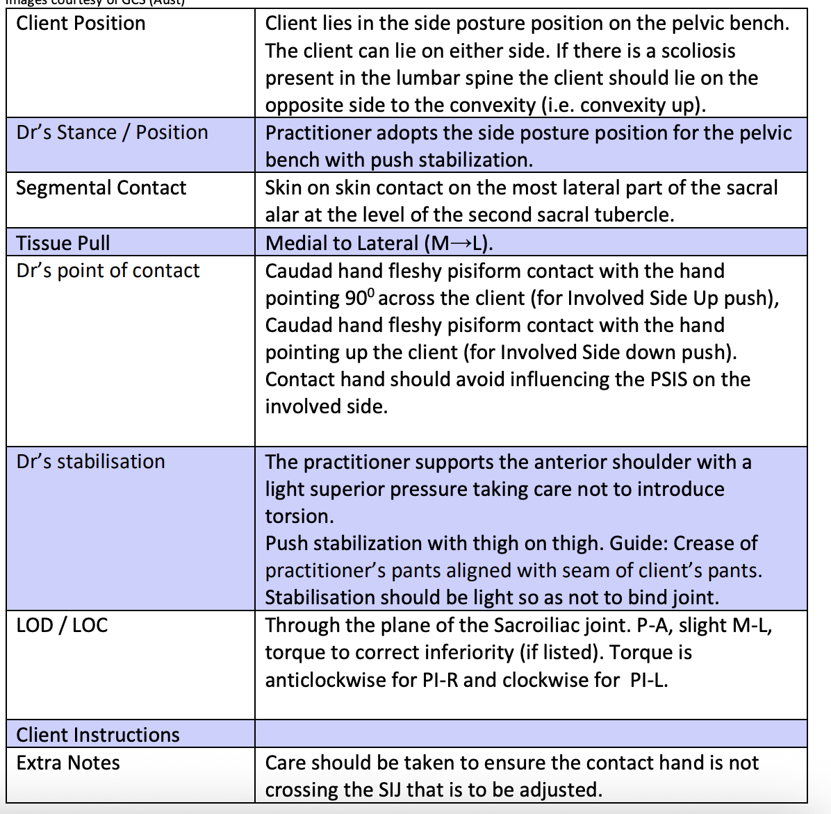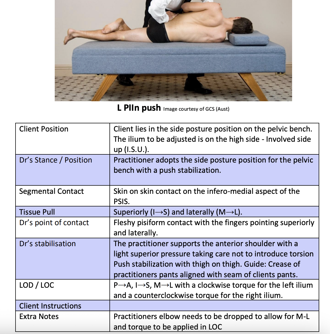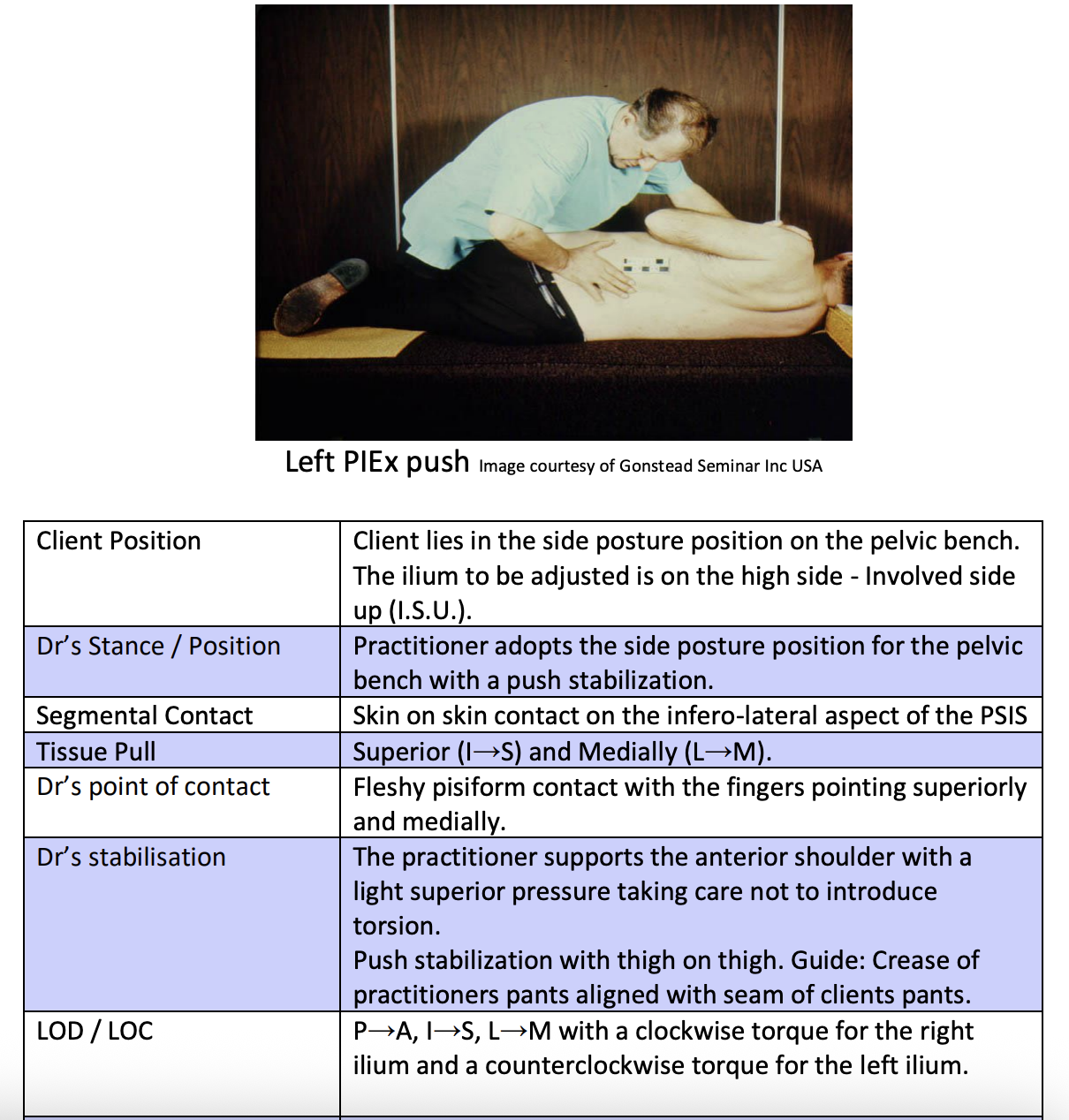 Sacrum P-L ISU and ISD Push