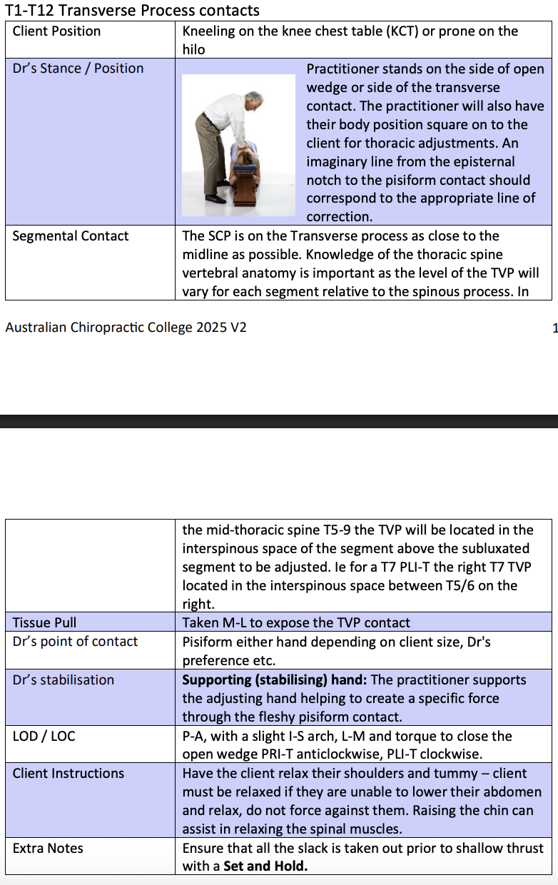 T1-T12 Transverse Process contacts